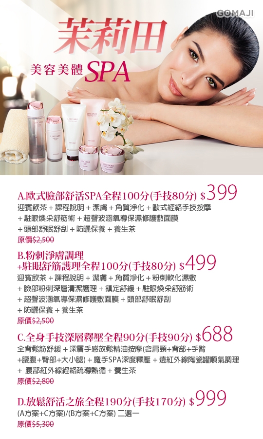 最近在網路上看到限時產品茉莉田美容美體SPA - 172668 覺得價格很實在 深得我心